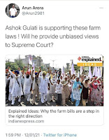 आपको मालूम होना चाहिए कि सुप्रीम कोर्ट का काम मध्यस्थता करना नहीं बल्कि अपना फ़ैसला सुनाना है, किसान आन्दोलन मैं डटे योगेंद्र यादव ने ये बात एक टीवी कार्यक्रम मैं कहने के साथ ही सुप्रीम कोर्ट की पहल का स्वागत करते हुए बनाई कमिटी पर भी अपनी तरफ़ से कहा कि ये चारों लोग वही है जो पहले ही इस कानून का स्वागत कर चुके हैं, सरकार के वकीलों को कमिटी का सदस्य बनाना कहां तक सही है ये चिंता का विषय है.